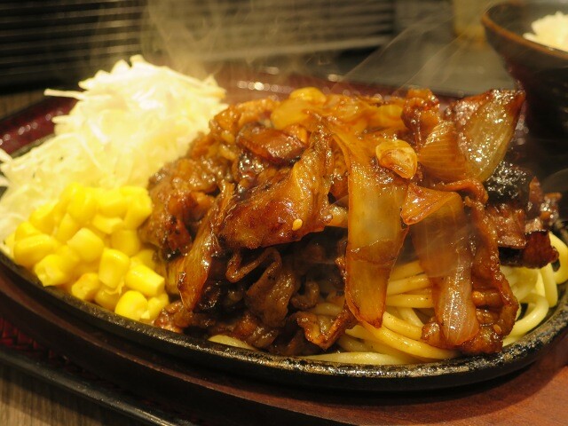 さらに、パスタ付きです。以前はナポリタンでしたが、焼肉との相性も考えて、今は塩胡椒&オイルのパスタ。