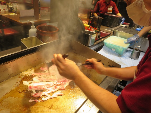 それを、鉄板で焼いていきます。もちろん、オーダー後に。