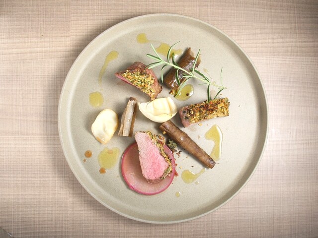 ラムはモモ肉。ローズマリーやセージなどを用いた香草パン粉焼きが肉の美味しさをさらに昇華
