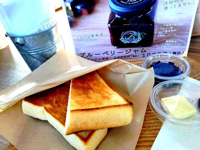 自家製のブルーベリージャムなどの付いた「トーストセット」は300円