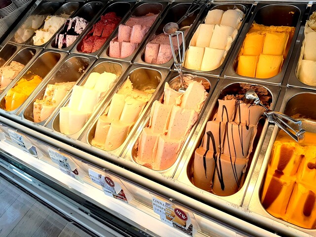 常時16種類のジェラートのうち4種類がブルーベリー系。通年は8種類で、残り8種類が時期で順次入れ替わるそう。