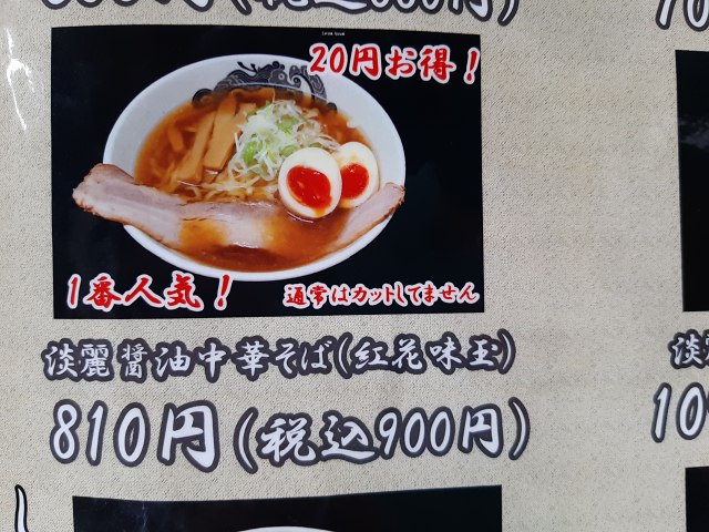 いただいたのは「淡麗醤油中華そば(紅花味玉) 」