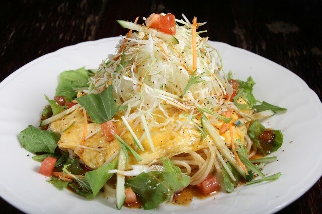 細めのパスタを用いた甘酸っぱくてピリ辛なテイストが楽しめます\(^o^)/