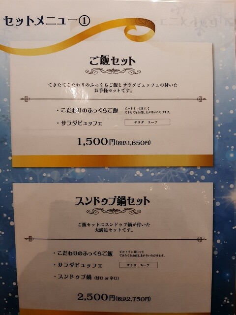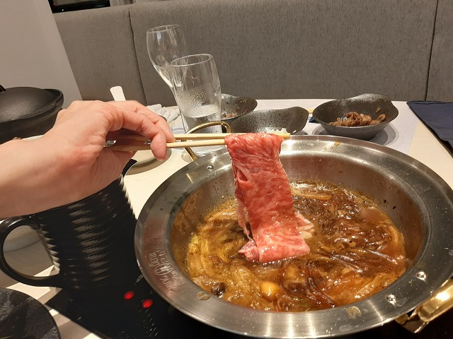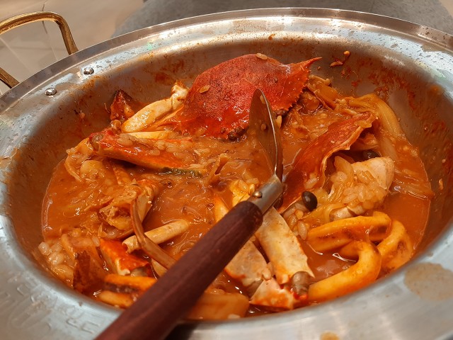 これ、二人でも充分な鍋の量だし(そもそも本当はこれでサラダビュッフェも付く)、カルビチムや牛赤身肉のユッケ風とかも合わせたら、食べきれないほどのボリューム。