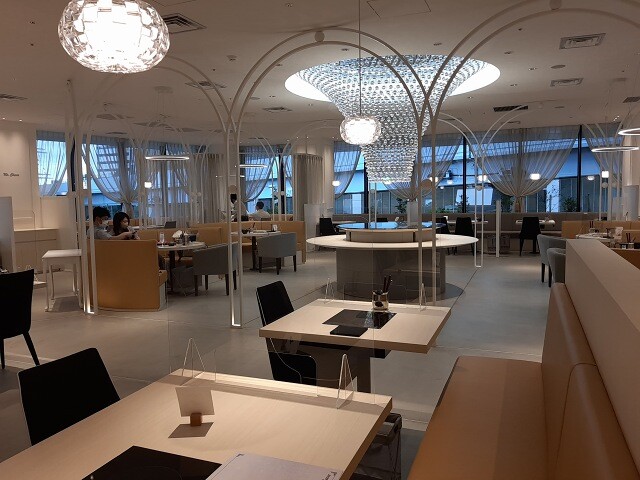 中央にはシャンデリアが輝いています(その下はサラダビュッフェのコーナーになるみたい)