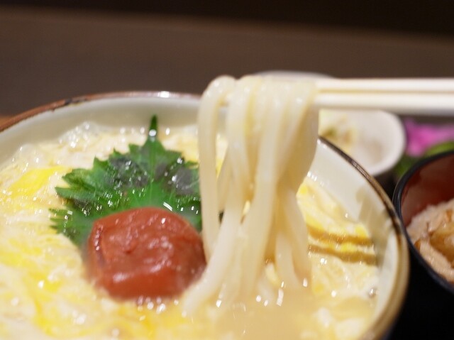 ダシの旨みに溶き卵の甘みが加わる「梅とじうどん」