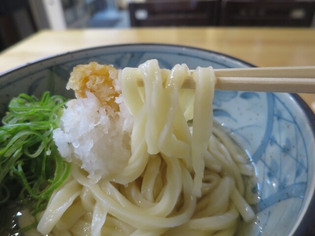 カツオやイリコの香るかけうどんもいいですが、鬼おろしの載ったぶっかけが特にオススメというので、「おろしぶっかけうどん」をいただきました。