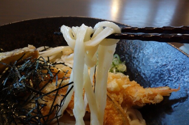 上質な小麦粉を用いた手打ちうどんは、瑞々しさと、ムニュっと伸びる素晴らしきコシが楽しめます。