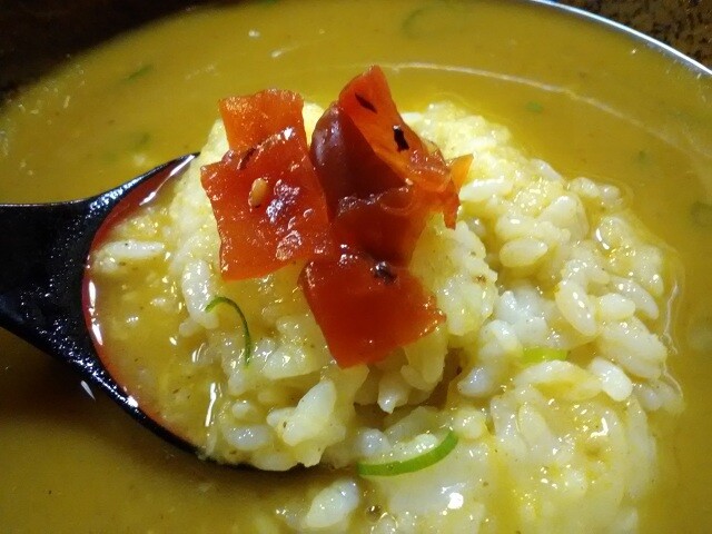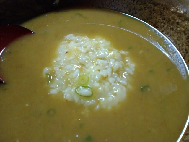 丼の底から、ごはん、とろろ、その上にカレーうどんが盛りつけられているため、後半は出汁と共にカレー雑炊として美味しく完食いたしました\(^o^)/