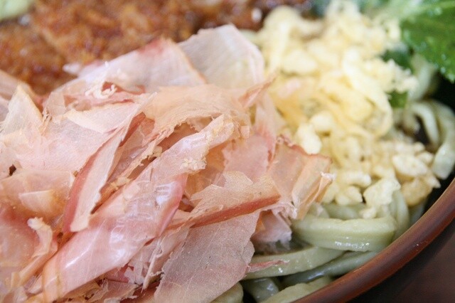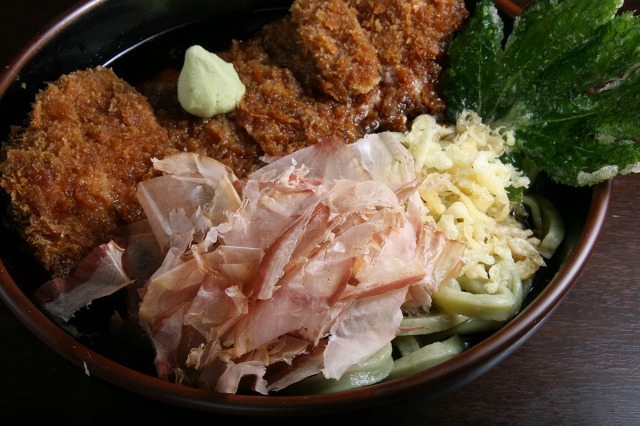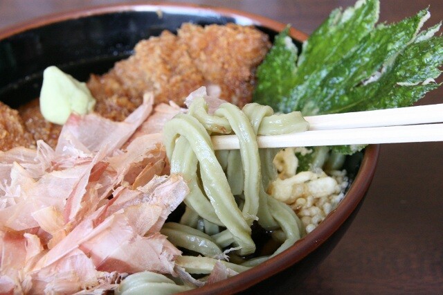なんと、自家製うどんは、あしたばの粉末を練りこんだタイプのみという潔さ!!