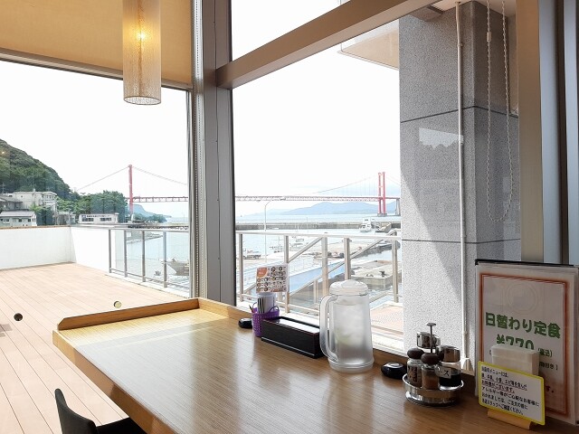 開放感あふれる2階のレストラン。赤く美しき平戸大橋をも眺めることが可能