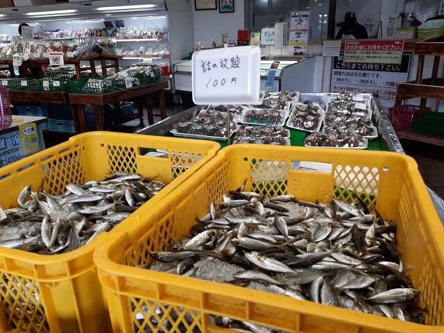 1階の農水産物直売所では、朝採れの野菜や鮮魚、果物、米、精肉などの生鮮品、加工品などを販売なさっています。
