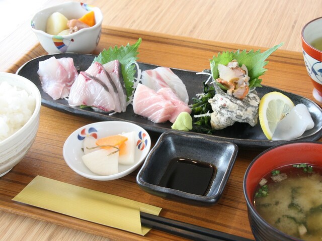 平戸瀬戸刺身盛りセット。平戸の海産物の美味しさが一堂に会した刺身盛り定食