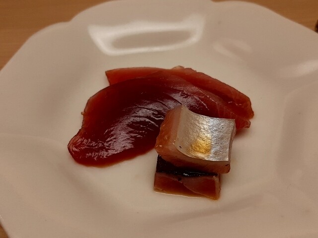 カツオ、〆サバ、さわら、いか、さより、たいらぎ、まぐろ、いくら、はまぐり、いくら、などなど。