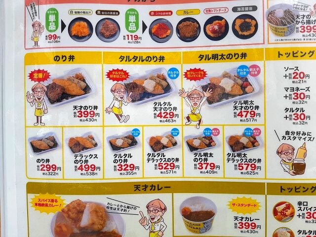 のり弁と聞いて少し調べたら「天才のり弁」というのがから揚げもつくのでお店の良さも出るかなと思ってたら