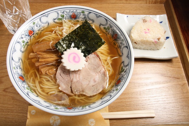 天然素材のみを使用し、豚の生ガラ(背ガラ)&鶏の生ガラ、老舗カツオ節問屋の焼きアゴなどで取った醤油スープは、透き通る中に素材の旨みが詰まってます♪