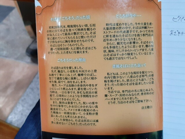 「ごちそう」だった頃のそばを追求した1杯は、化学調味料不使用で、石垣島産豚の赤身肉と骨をふんだんに長時間煮込んだ優しいスープ♪