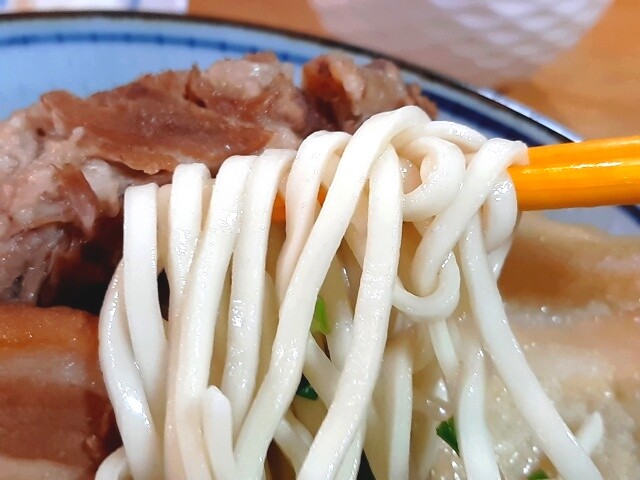 製麺所直営ゆえの保存料、着色料不使用の、細平打ちですがコシの強い麺も良かったです。