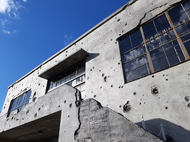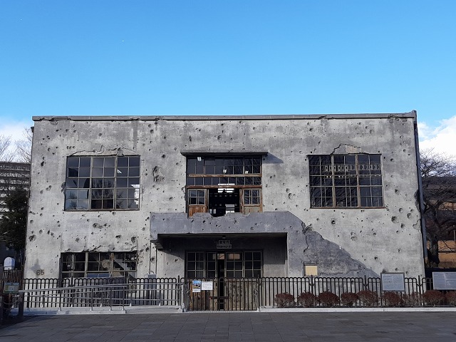 太平洋戦争の時、アメリカの小型戦闘機やB-29などによってもたらされた無数の穴