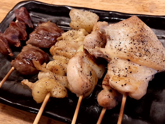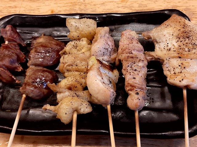 手羽先、まぬけ(もも)、ねぎま、かわ、ハツ、砂肝。