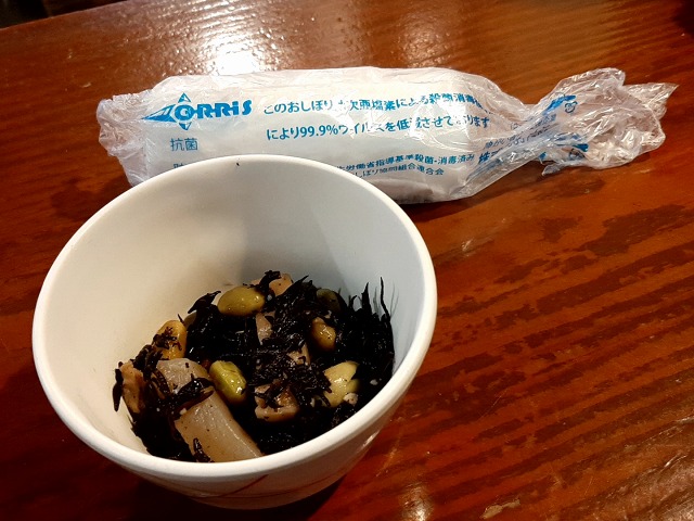 ビニールに包まれた布おしぼりが出てくるところは、ほぼほぼ素晴らしいお店です。