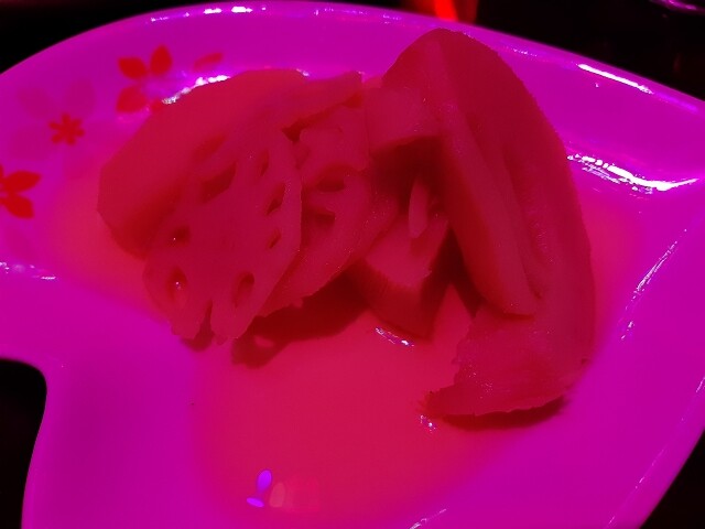 ママの手作り煮物もピンクに染まっておりました。。
