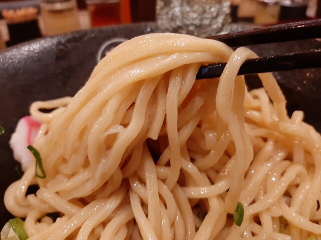 中太ストレート麺の存在感も良く、混ぜるほどに一体化します。
