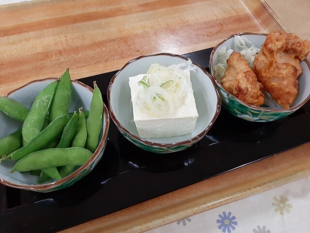 おつまみ3品。これが晩酌Aセット。720円