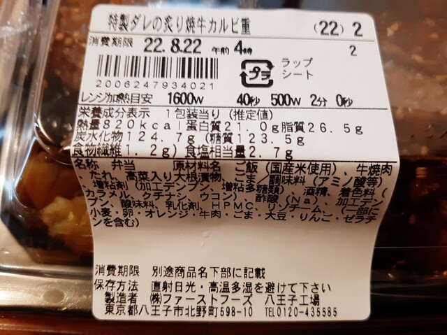 炙り焼牛カルビ重(ファミマ)