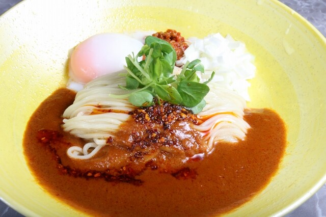 そこに、自家製角切りチャーシューや温泉玉子、彩り豊かな野菜がトッピングされています。
