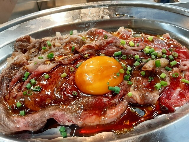 サササっと焼いてから、卵黄&タレ、青ネギ。とろける美味しさ。