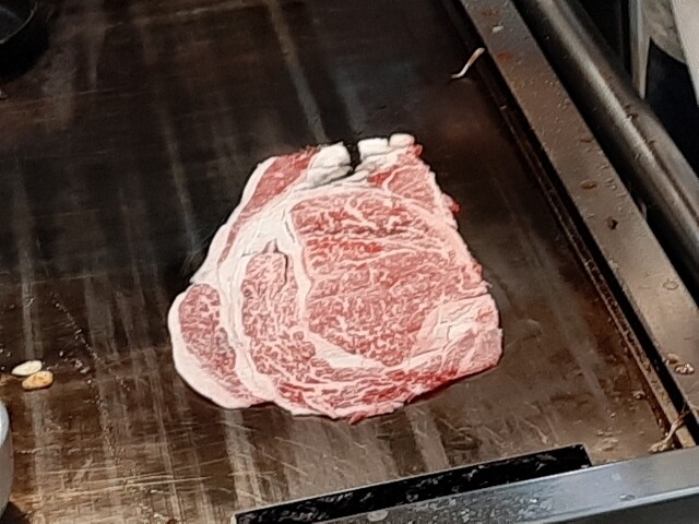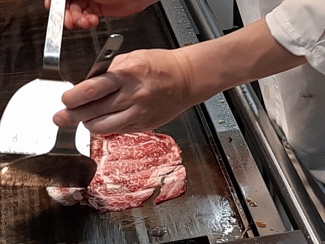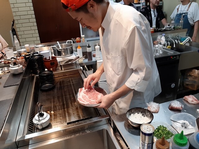 鉄板の前で店長さんが焼いていきます。