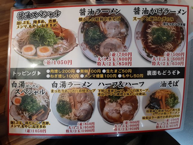 濃厚ですが後味の良い「白湯ラーメン」や、それらの「ハーフ&ハーフ」も評判です。