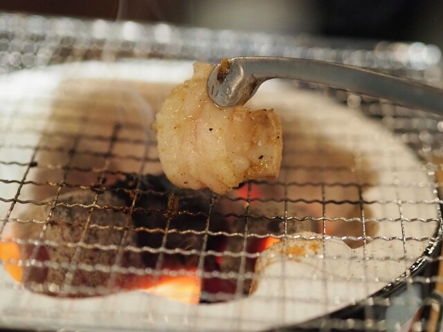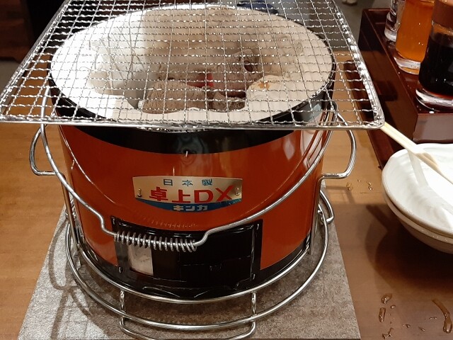 卓上の七輪でセルフ焼きのスタイル。