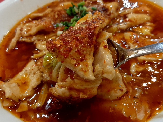 オイリーな汁に浸った豚肉と、辛味と花椒の容赦ない攻撃!