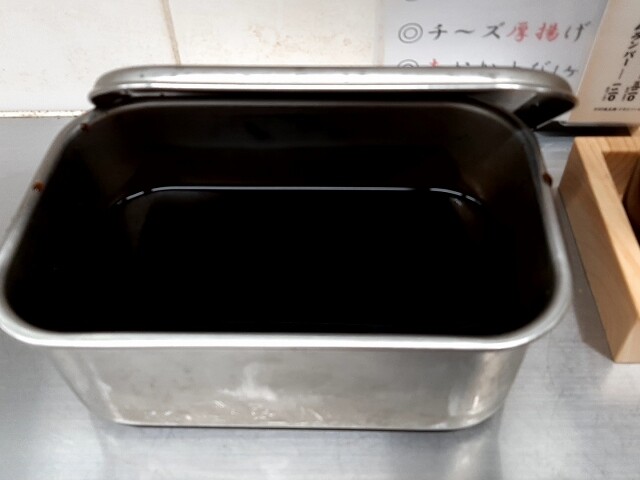 ステンレスの容器にソース。