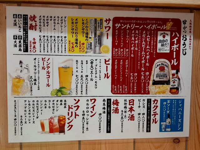 でもあちらはお通し代が198円かかるので、1杯だけなら77円の差ですww