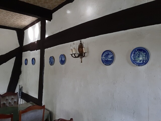 年代物のロイヤルコペンハーゲンの皿が飾られた店内も素敵です!