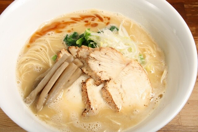 本店はメインが鶏白湯スープで、赤城鶏を強火に煮詰め、心地よい濃度に仕上げています。