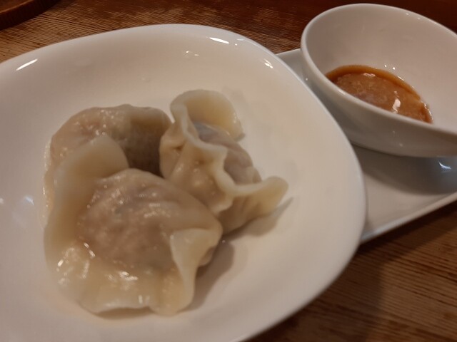 肉汁たっぷりの「手作り茹で上げ餃子」(数量限定)も美味しかった!
