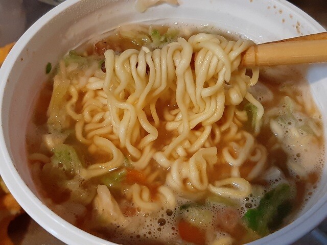 2023年05月20日 【コンビニ】「中みそ」みそラーメン(ローソン) サンヨー食品「中みそ」みそラーメン (ローソン) 258円(税込) 弘前の中三百貨店にある「中みそ」とローソンがタッグを組んで発売されたカップ麺が、1年を機にリニューアルしたバージョンです。 たしかに生姜感がUPしてます。 「中みそ」の味を適度に再現。甘じょっぱくも優しい味わいの味噌スープが本物を彷彿とさせます。 野菜の存在感も、なんとなく踏襲。 啜りやすい麺の細さ&のど越しも良かった! #サンヨー食品 #中みそ #中みそラーメン #はんつ遠藤 「ローソン」カテゴリの最新記事 < 前の記事次の記事 >