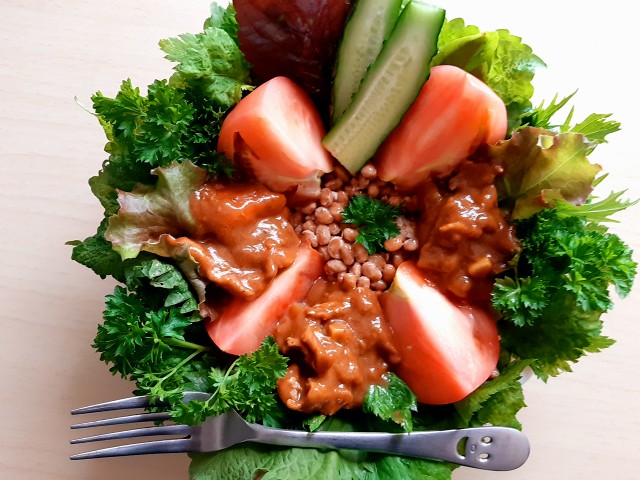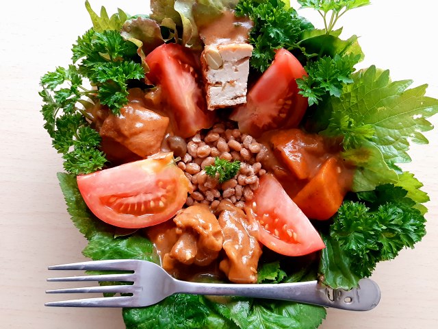 (現在は、三つ葉とパセリとサラダ菜とブロッコリーの葉とサニーレタスと水菜と春菊と大葉と小松菜とほうれん草と紫玉ねぎときゅうり)