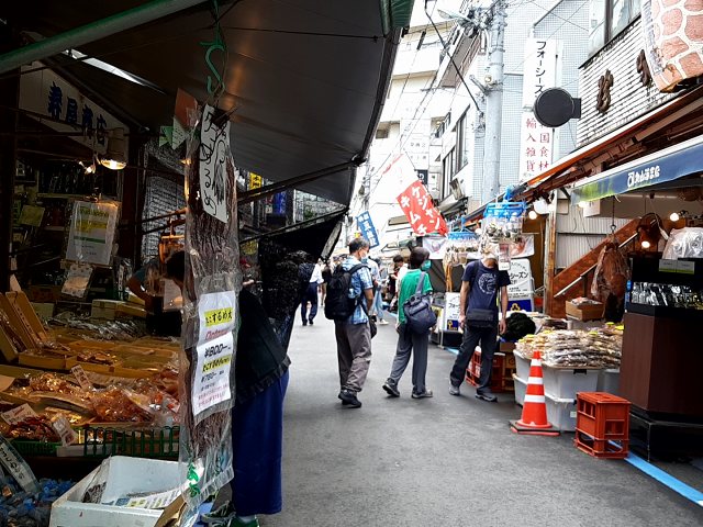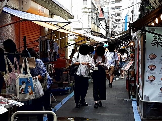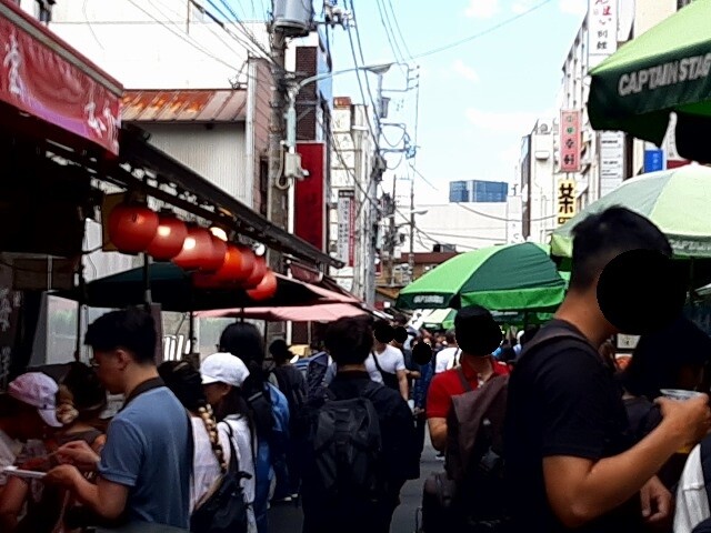 築地場外市場に行ったら海外に来たような雰囲気になっていて、楽しかったです♪