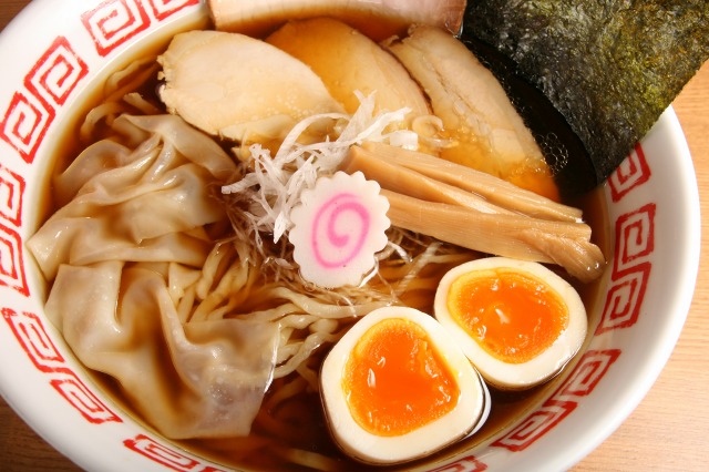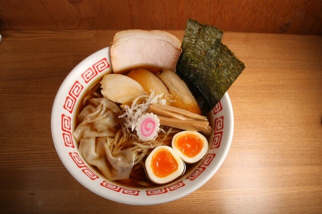 煮干しやカツオ厚削りなど魚介系も加えたダブルスープの醤油テイスト。