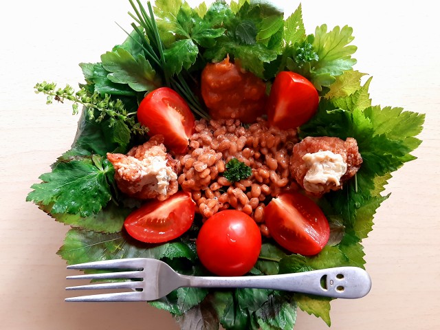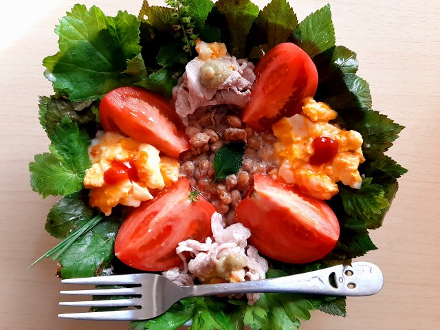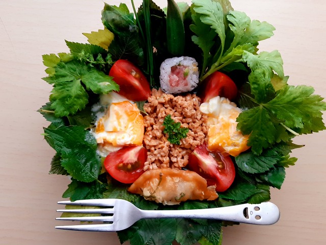 (現在の畑は、三つ葉とサニーレタスと大葉と大根の葉と茄子とオクラとモロヘイヤとわけぎとパセリと春菊)