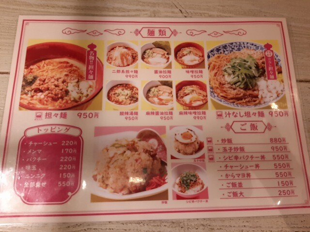 担々麺系はノーマルから汁なし、二郎系などさまざまな種類がありました。