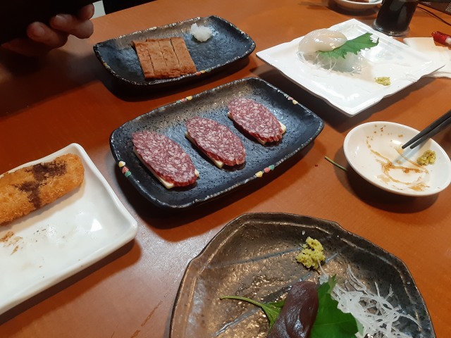 2023年12月27日 【居酒屋】大都会 (千葉・松戸) 先日、秋田から知り合いが来たので 13時から松戸の「大都会」へ。 ワンコイン晩酌セット500円(ドリンク+お刺身)は昼間でもOKでした。 選べる刺身3点盛 670円 チーズ&サラミ 320円 もつ煮 380円 あとは100円の酎ハイとかハイボールとか。 数名での大都会も良いですね。楽しかった!! 大都会 松戸店 千葉県松戸市本町4-9 流鉄ビル B1F 047-364-5006 #大都会松戸店 #居酒屋大都会 #松戸居酒屋 #松戸せんべろ #松戸激安居酒屋 #はんつ遠藤 「居酒屋BAR(東京以外の関東)」カテゴリの最新記事 < 前の記事次の記事 >
