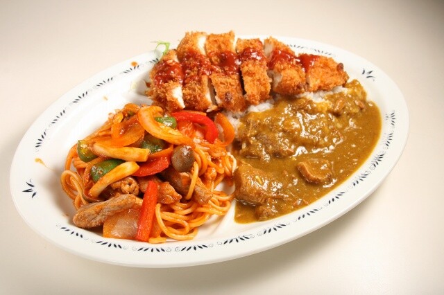 大評判の「トルコライス」は、甘味が活きる濃厚なナポリタンと、