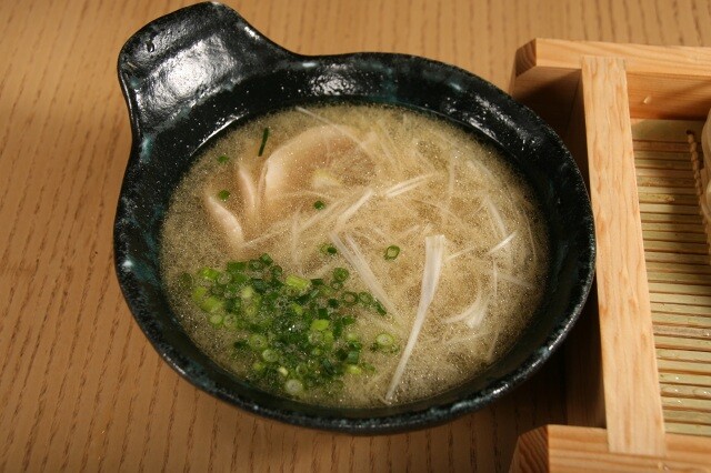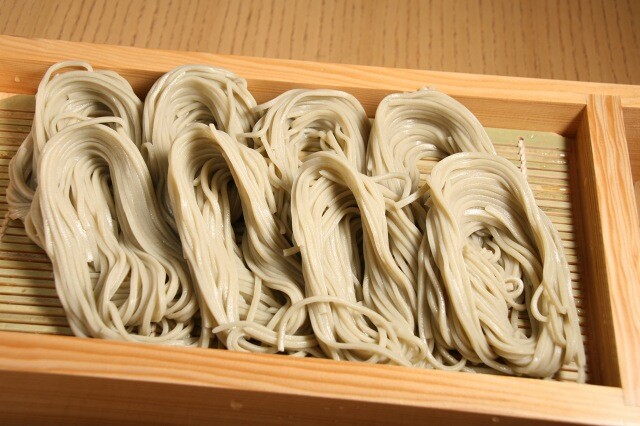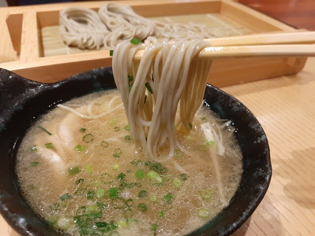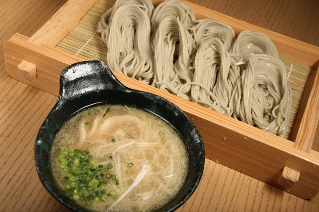 そば粉に“ふのり”(海藻)を配合した生麺使用タイプで、