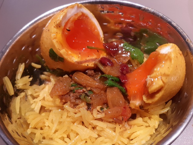 残ったスープは、パスマティ使用のターメリックなどの効いた“ダイブ飯”に上からかけて味わえました!
